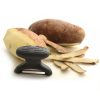 Peel through potatoes, carrots, cucumbers, apples, pears in seconds! The soft, santoprene handle is designed for a strong, comfortable grip. Ergonomically designed to fit perfectly for right or left hand use. Includes a cover for safe and compact storage. Stainless steel blade that stays sharp. Dishwasher safe. Carded. Dimensions